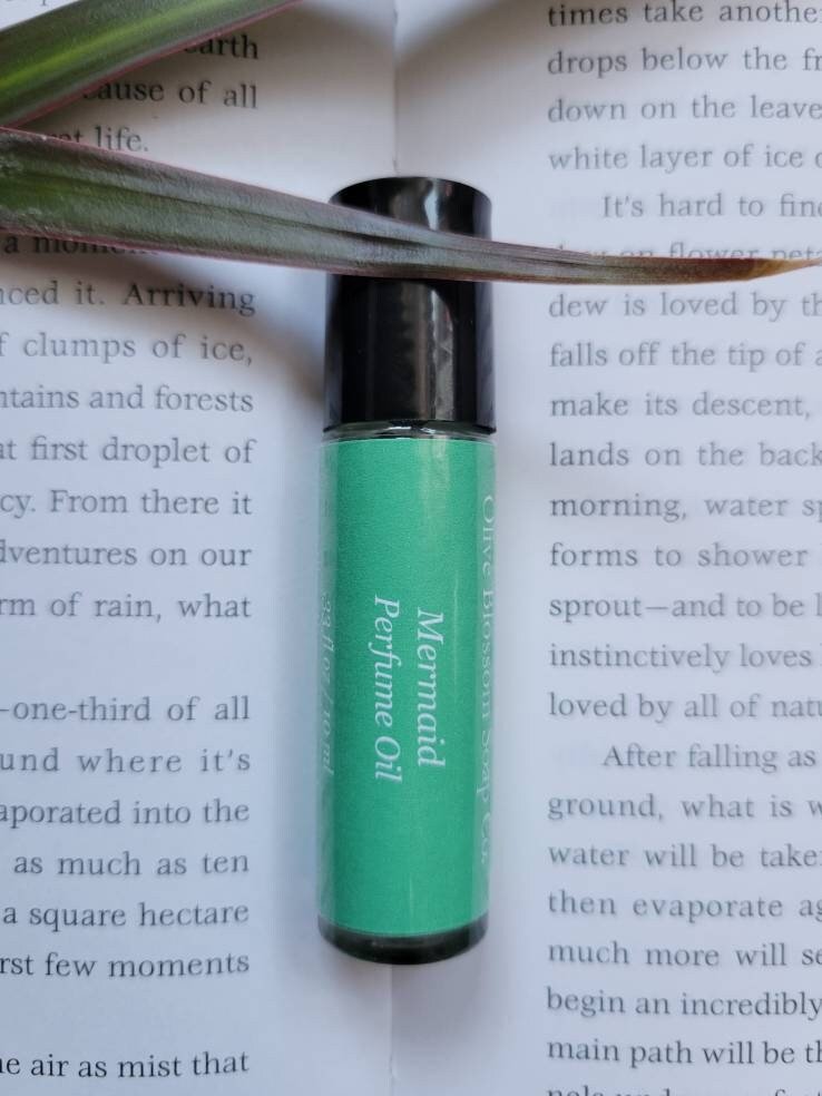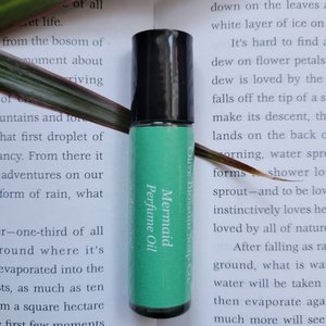 Our "Mermaid" perfume oil is well-scented using high-quality, phthalate-free fragrance oil carried by fractionated coconut oil for a light and non-greasy feel when worn.